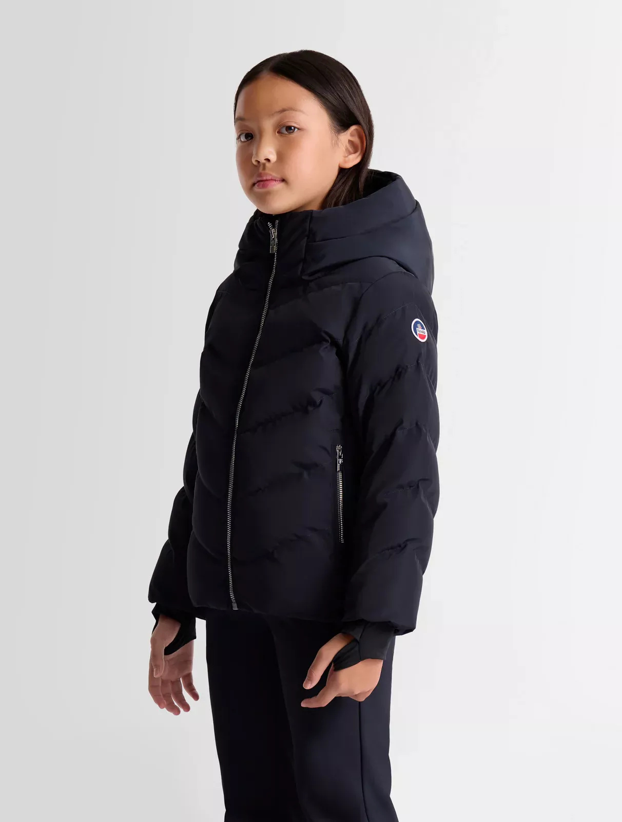 La veste de ski Delphine Jr en toile irisée imperméable et déperlante est très chaude et adapté aux température hivernales. Repensée depuis le modèle femme pour l'enfant elle est une pièce iconique de la Maison Fusalp. Intemporelle, elle est structurée par un matelassage en V iconique. Ses nombreuses poches et fonctionnalités en font l'allié parfait toute l'année en ville ou à la montagne.