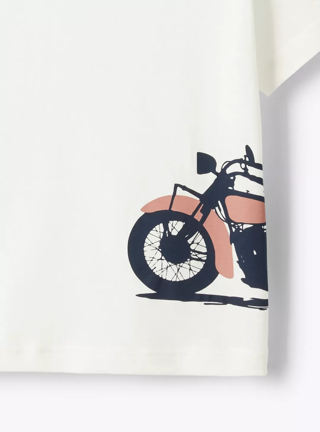 T-shirt à manches courtes de coupe régulière en jersey de coton avec un imprimé d’une moto sur le devant. Idéale pour les activités de plein air et les après-midis de divertissement.