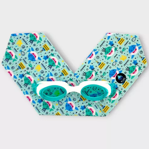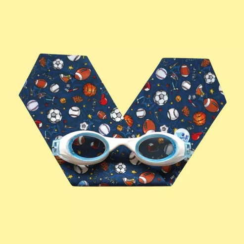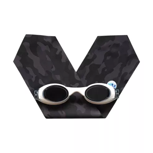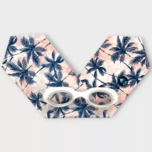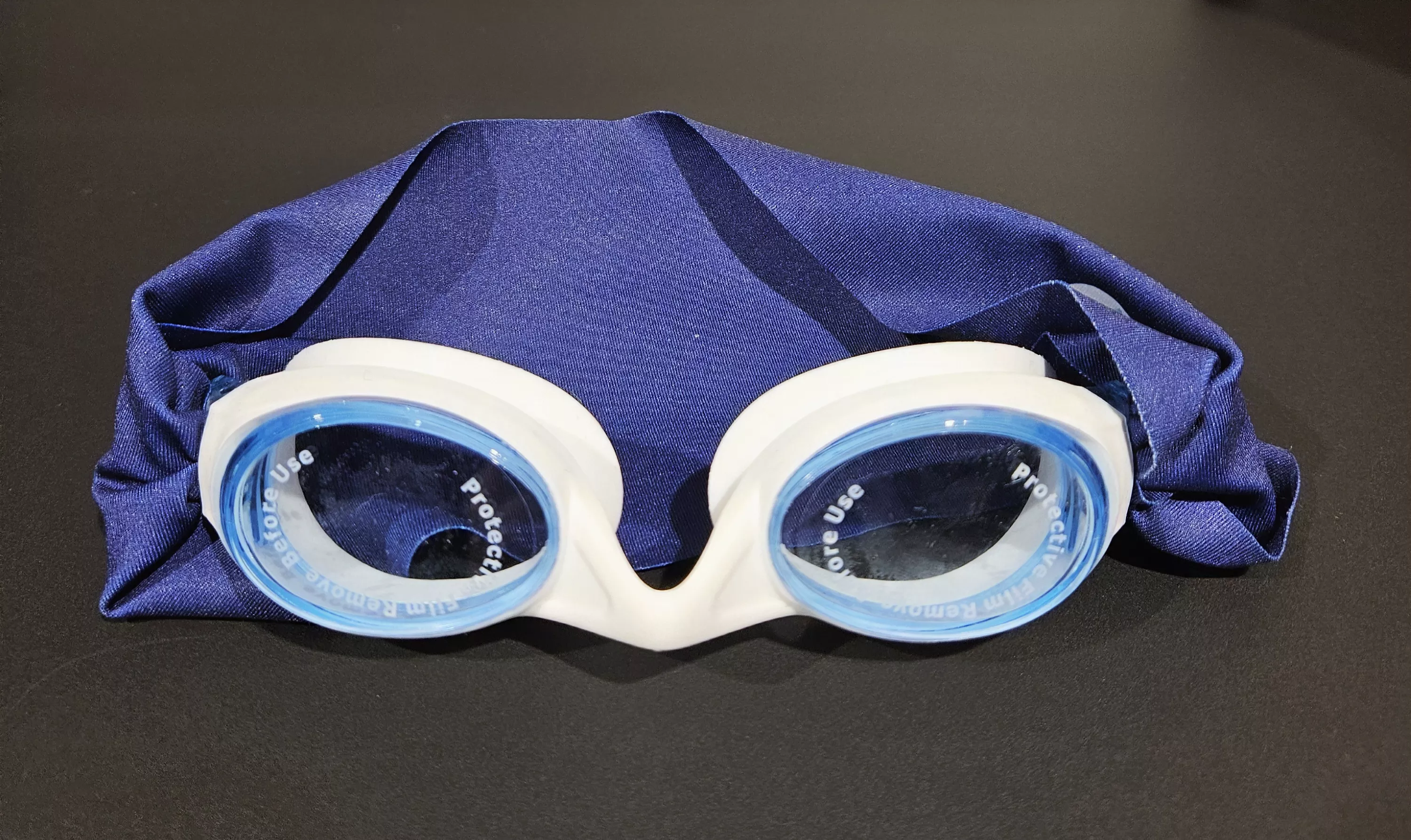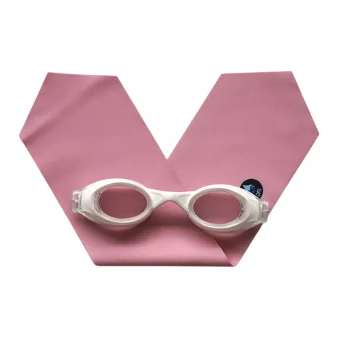 Lunettes de natation, maintenues par un bandeau stretch et tout doux fabriqué dans un tissu similaire à celui des maillots de bain, en élasthanne et en polyester recyclé à 100% à partir de déchets plastiques.